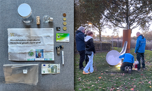 Vrijdag 19 november 2021 was het moment daar om de Hoorn des Tijds weer te sluiten voor de komende 25 jaar. Ruim honderd Alphenaren haalden de voorgaande maanden een speciale tijdcapsule op bij Bibliotheek Rijn en Venen, die zij vulden met een bijzonder voorwerp, wens of voorspelling voor de toekomst.
